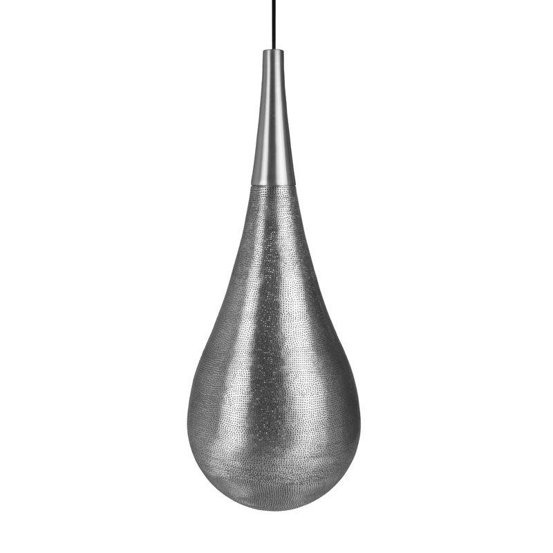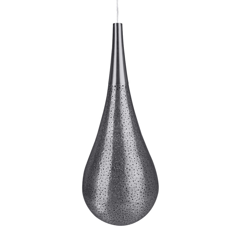 The Essence light is made in copper-galvanised steel. It is available in single or multi hole patterns. It's beautiful tear shape with multiple size holing makes it magnificent as it projects shadows on the wall creating a sensual atmosphere.