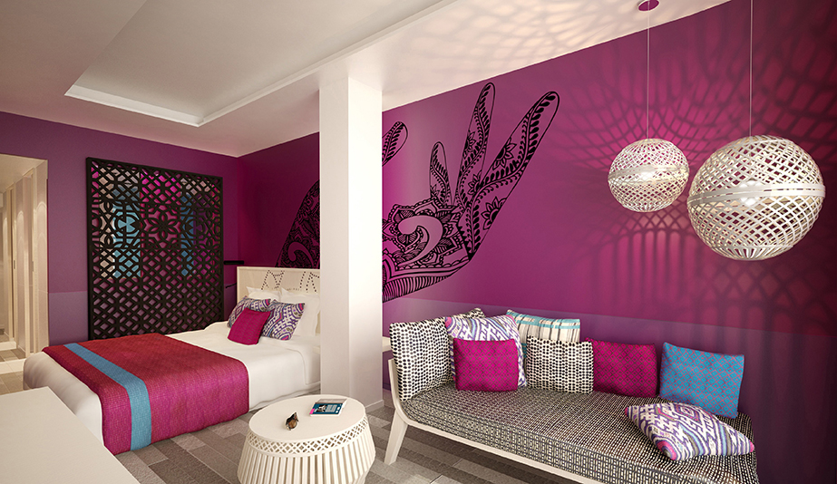 Club Med Yasmina, Morocco. KAFKA GOES PINK provided the totality of the custom design lightings and moucharabieh Fatima Hands on the room walls.